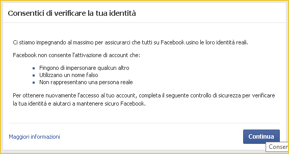 Può capitare che, accedendo a Facebook su un account che utilizzamo per lavoro (spam) possiamo trovarci davanti un avviso di questo tipo.